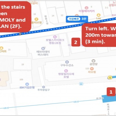 - 地下鉄4号線 ミョンドン (명동)- 261.8m