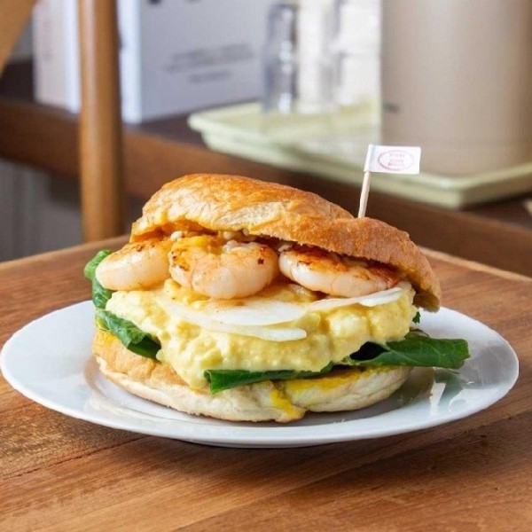 ぷりぷりのエビと、まろやかなポテトエッグサラダの意外な組み合わせが癖になる、SNSで話題のメニュー。洗練された味わいを求める方に。