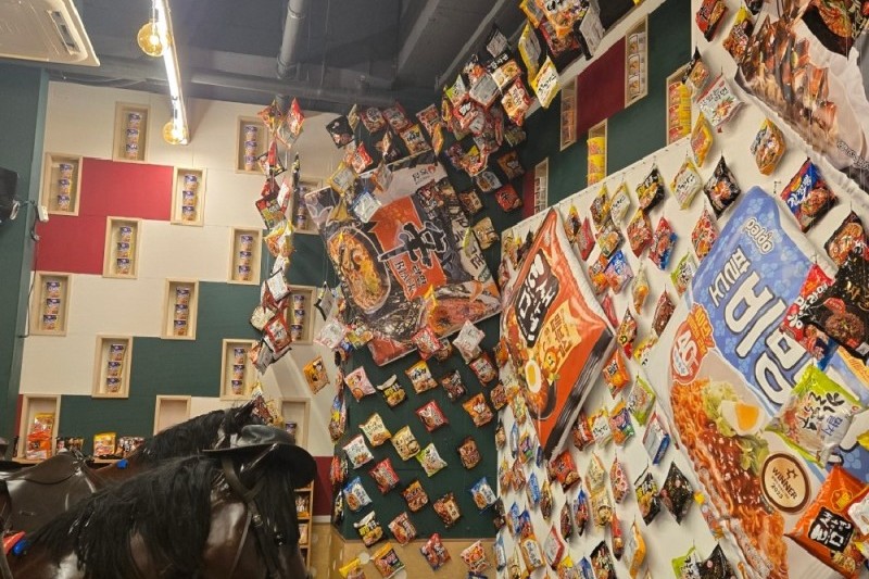 ◆ 圧巻の「ラミョン・ライブラリー」:店内の主役は、床から天井まで美しく陳列された、韓国が誇る名作ラミョンの数々です。濃厚でクリーミーな牛骨スープから、SNSで世界中を熱狂させている伝説の激辛スパイスまで、その圧巻のラインナップから自分だけのキャンバスを選ぶ瞬間こそ、この美食体験の胸高鳴るプロローグです。