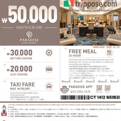 パラダイスカジノウォーカーヒルクーポン Paradise Walkerhill Casino Coupon(ウォーカーヒルカジノ) 韓国カジノ 파라다이스 카지노 워커힐